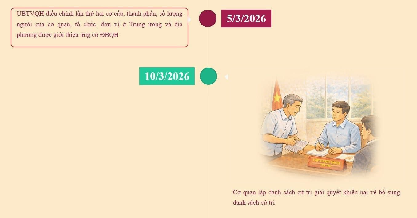 Ngày 15/3/2026 là Ngày toàn dân đi bầu cử ĐBQH khoá XVI và đại biểu HĐND các cấp nhiệm kỳ 2026-2031. Cuộc bầu cử ĐBQH khóa XVI và đại biểu HĐND các cấp nhiệm kỳ 2026-2031 là sự kiện chính trị trọng đại của đất nước diễn ra ngay sau Đại hội lần thứ XIV của Đảng. Đây là đợt sinh hoạt dân chủ sâu rộng trong nhân dân nhằm phát huy quyền làm chủ, lựa chọn những người tiêu biểu, xứng đáng, đại diện cho ý chí, nguyện vọng và quyền làm chủ của nhân dân. Dưới đây là các mốc thời gian trước khi diễn ra cuộc bầu cử ĐBQH khóa XVI và đại biểu HĐND các cấp nhiệm kỳ 2026-2031.